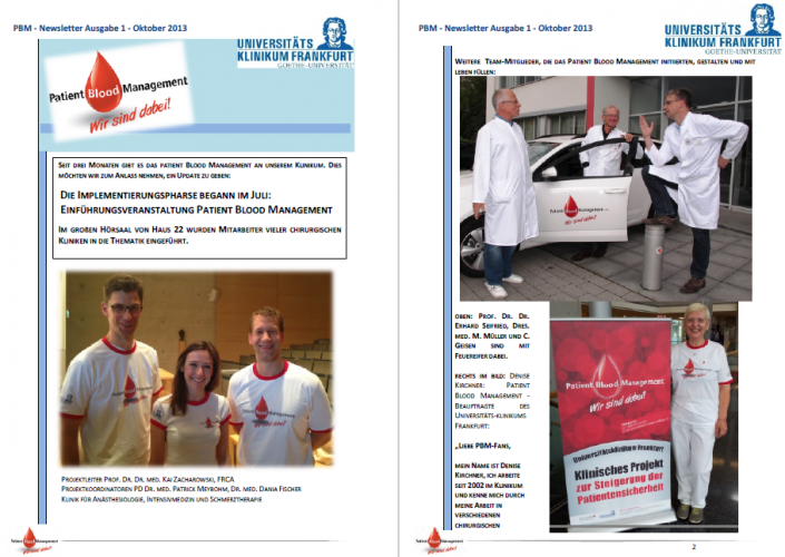 Our first newsletter is available for download. We report on the early project phase of Patient Blood Management at the University Hospital Frankfurt.